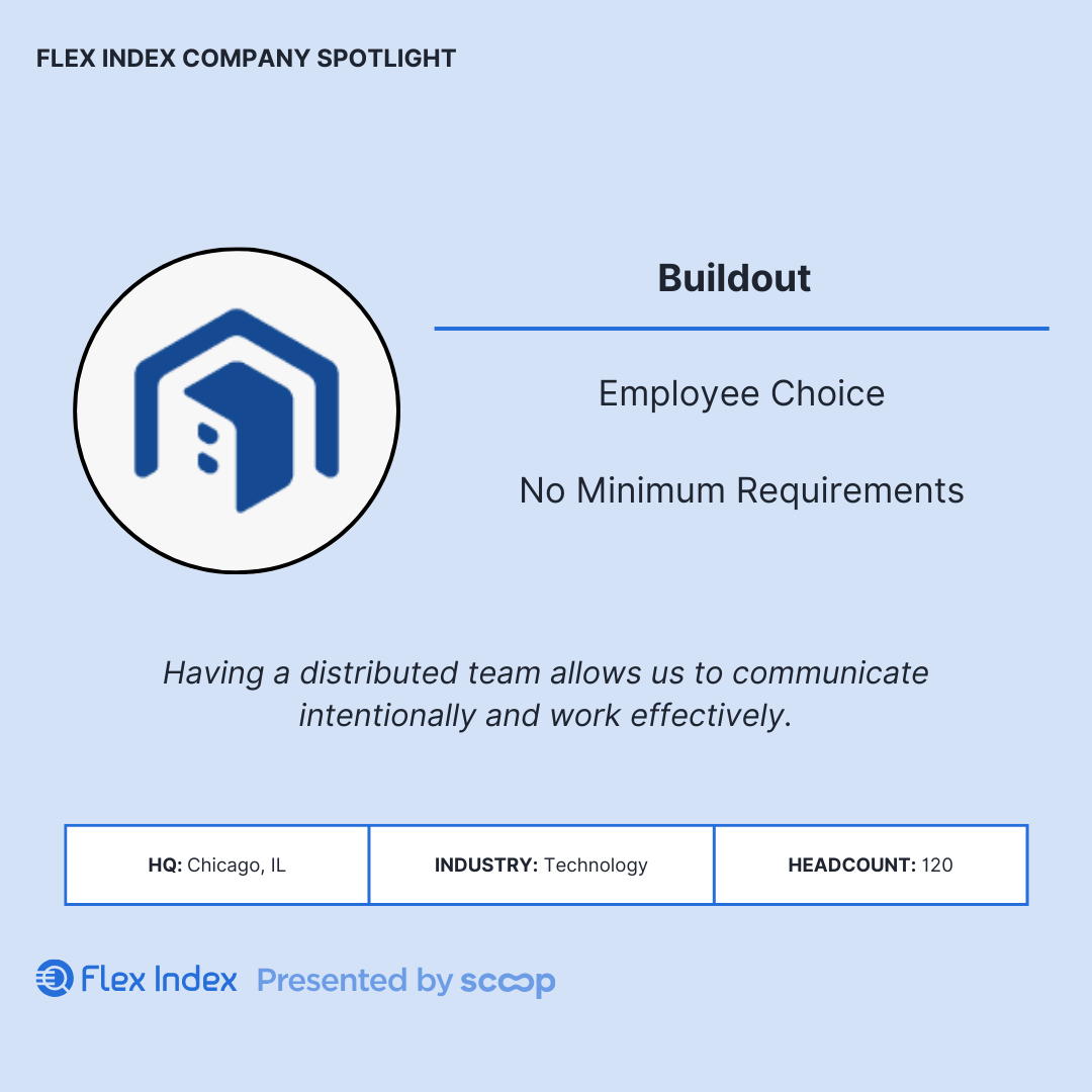 Buildout has offices in downtown Chicago and Cincinnati for employees who prefer an office setting. Buildout's Media division, based in Cincinnati, takes advantage of the office several days per week to collaborate but also has the flexibility to work remotely. Buildout's business development team is distributed today, but as they continue to hire for this team, will prioritize Chicago candidates to have in-person collaboration days each week.