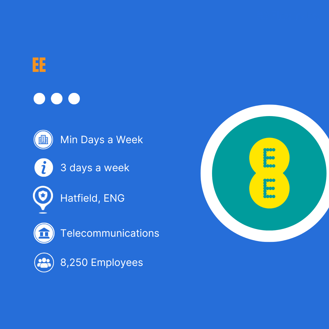 Founded in 2010, EE (Everything Everywhere) is the largest 4G network and mobile provider in the UK, offering telecommunication services including broadband and mobile connectivity. The company, headquartered in Hatfield, England, envisions connecting people to everything, and their mission is to create the best network and best services so customers trust EE with their digital lives.
